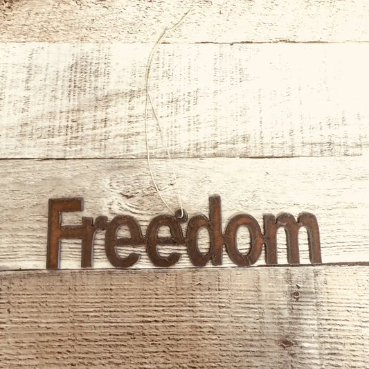 Freedom Rustic Metal Word Ornament Charlie Kirk Christmas