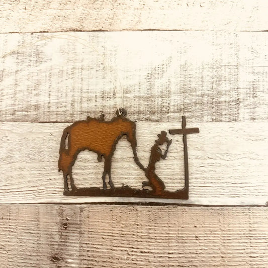 Cowgirl at Cross Praying Western Rodeo Ornament Made in USA