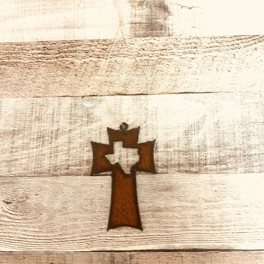 Cross with Texas Cutout Rustic Metal Ornament Made in USA