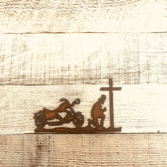 Biker At Cross Motorcycle Memorial Praying Biker Ornament