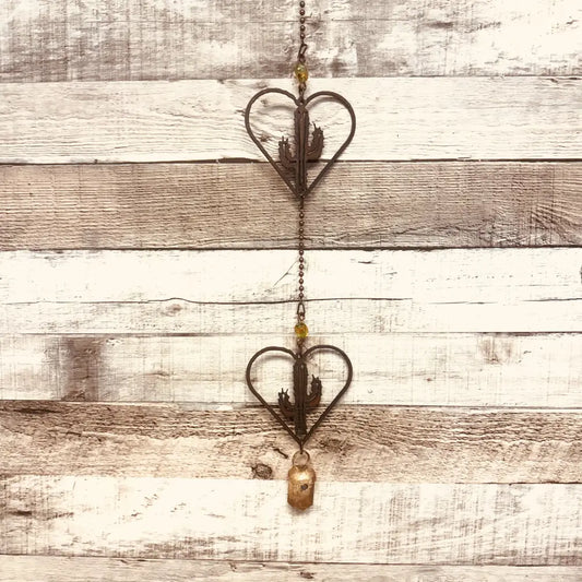 Heart Outline with Cactus Double Bell Rustic Metal Garden