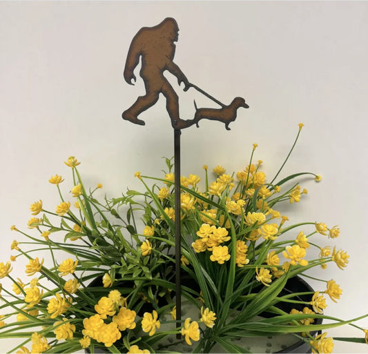 Bigfoot Yeti Sasquatch with Dachshund Wiener Dog Stake