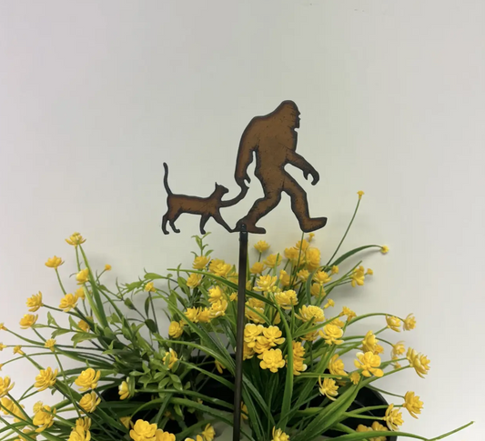 Bigfoot Yeti Sasquatch with Cat Garden Plant Stake