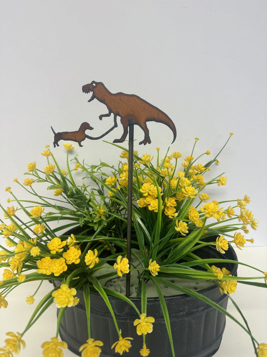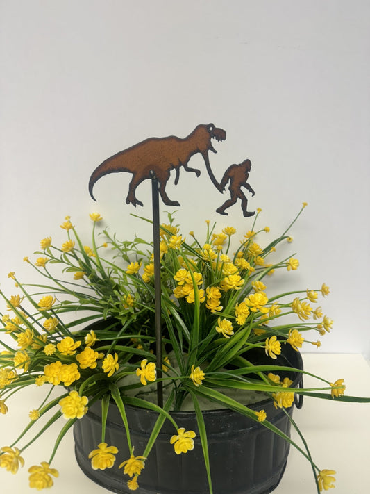 T-Rex with Dog Garden Plant Stake