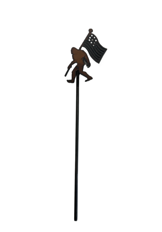 Bigfoot with Flag Yeti Sasquatch Garden Plant Stake