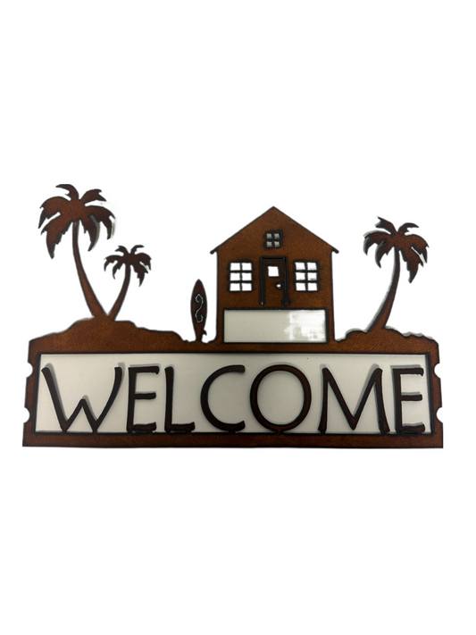 Beach House with Trees Nautical Welcome Sign