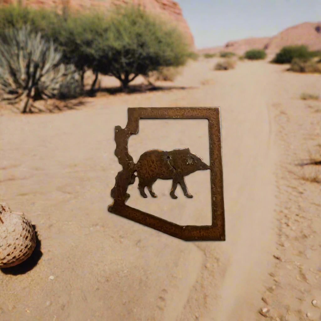 Arizona Outline with Javelina Rustic Metal Magnet USA MADE