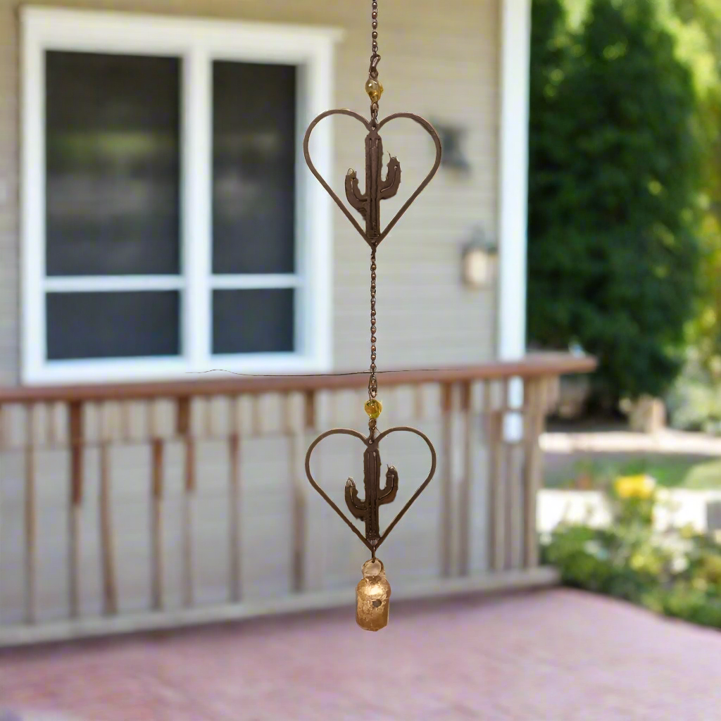 Heart Outline with Cactus Double Bell Rustic Metal Garden. Bead Color May Vary. Perfect for additions to your Rustic Farmhouse Porch. The sought after gift for Mom or Grandma with some succulent charm.