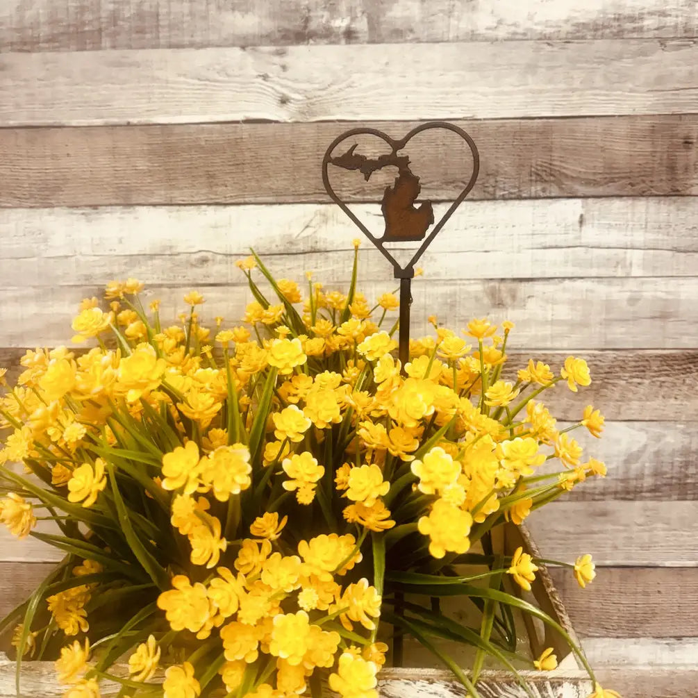 Outline Heart w/ UPPER AND LOWER MICHIGAN Garden Plant Stake. All Garden/Plant Stakes are affixed to a 12' stake with each ornament having a height of 3.5-5".