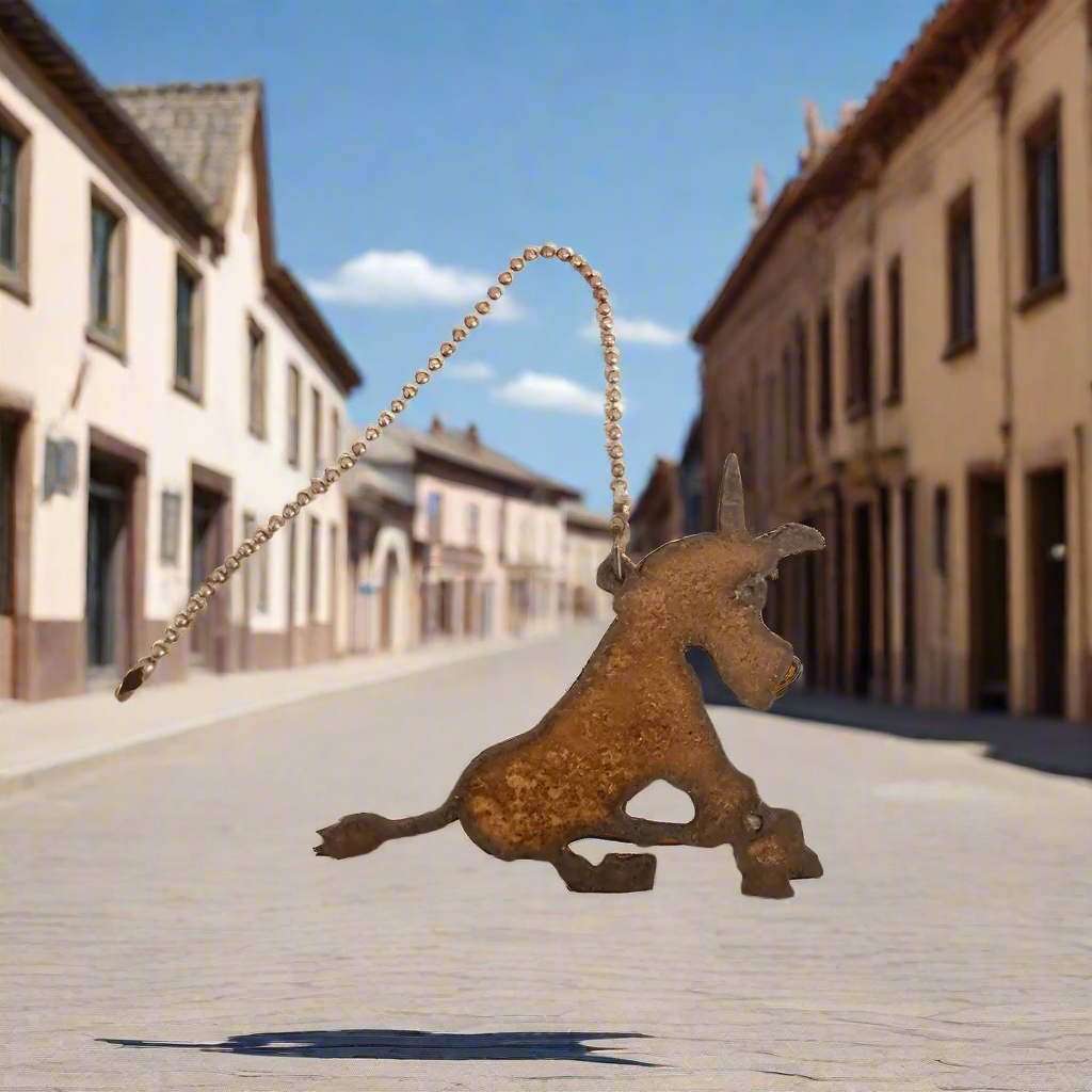 From the esteemed Rusty Cowgirls comes the Sitting Donkey Rustic Metal Fan pull Made in The USA, a unique addition to your home decor. This sculptural piece, perfect for year-round use, combines functionality with a touch of rustic charm. Each metal piece is individually rusted in our Arizona rust farm, ensuring an authentic, distinct finish. Whether you're enhancing a large space or adding a custom touch to a small room, this fan pull promises to be a conversation starter. American made, and cut by Americans, it represents our commitment to quality and craftsmanship.