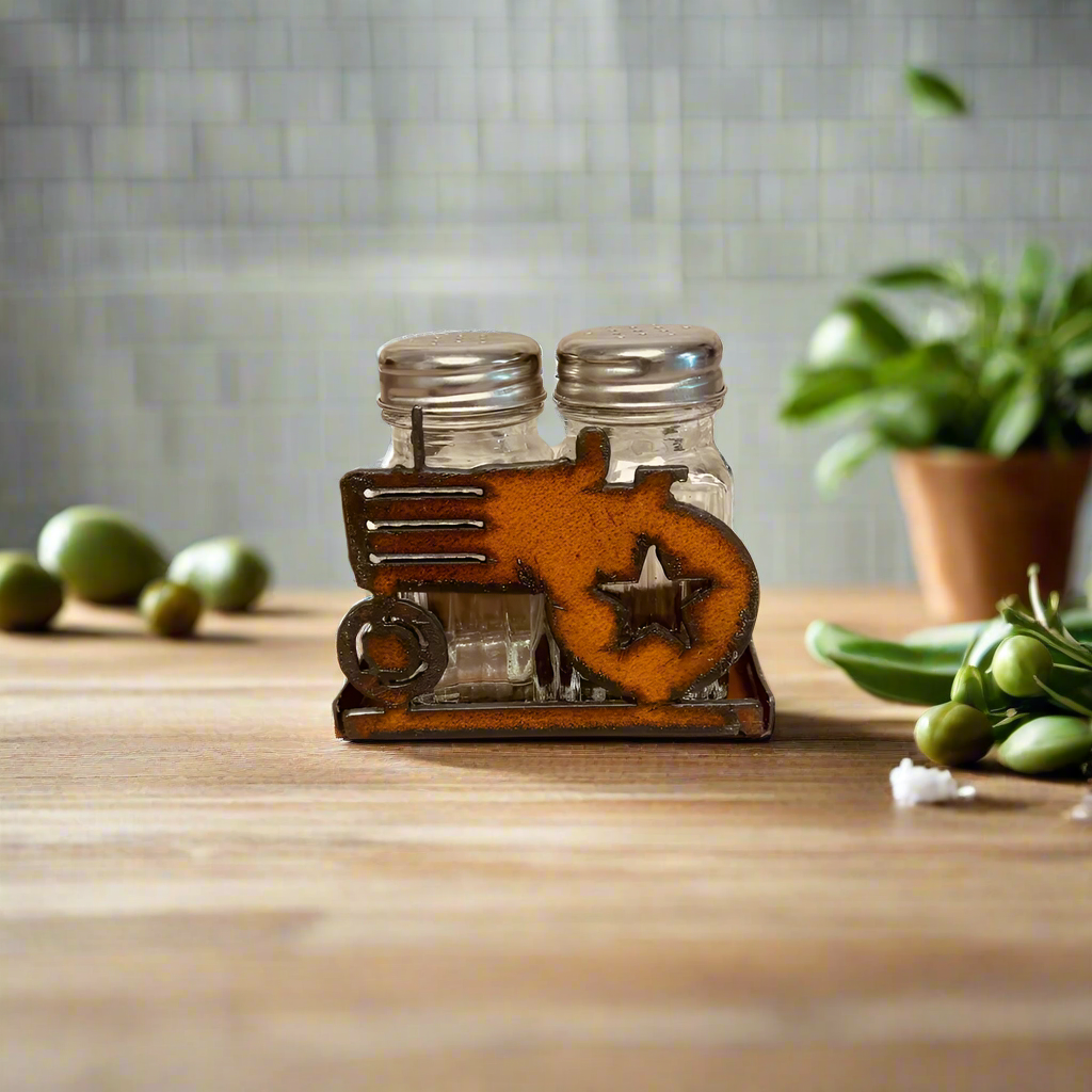 Immerse your kitchen in the rustic charm of Rusty Cowgirls Tractor Farm Rustic Salt N Pepper Shaker. Perfect for both large gatherings or intimate dinners, this set is a testament to our dedication to quality and craftsmanship. Enhance your dining experience with a touch of vintage elegance. Glass Shakers are included. Perfect for any table, this Americana Themed product is a tribute to the preservation of the American Workhorse the Farm.