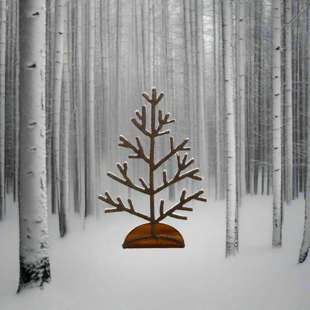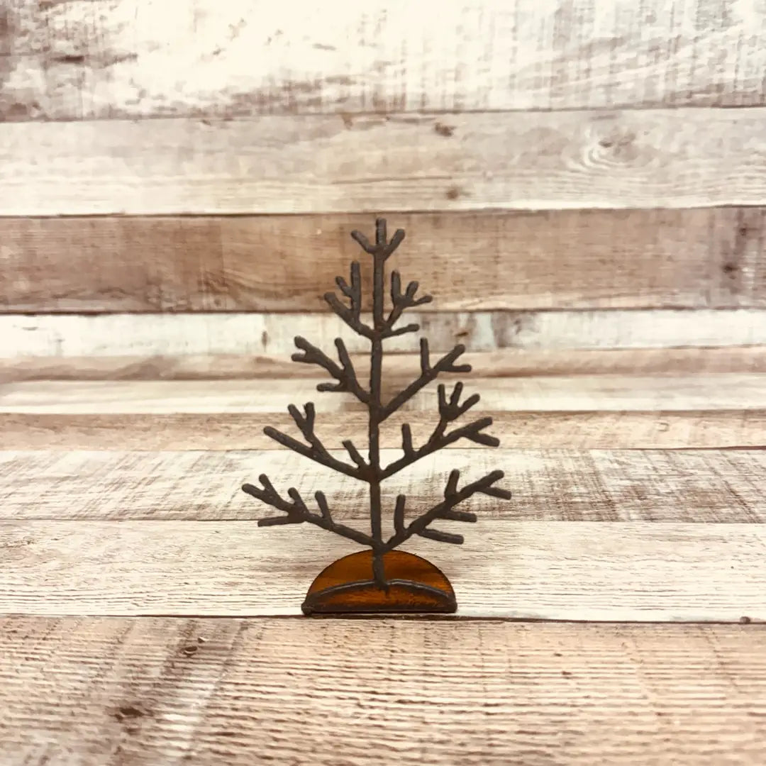 Rusty Cowgirls presents the Tree #2 Doodad Holiday Christmas Standing Figurine Tabletop Gift. This decorative tabletop object is a small ironworking gem that adds a touch of rustic charm to your home decor. With this unique piece you can bring a touch of the valley right into your living space.